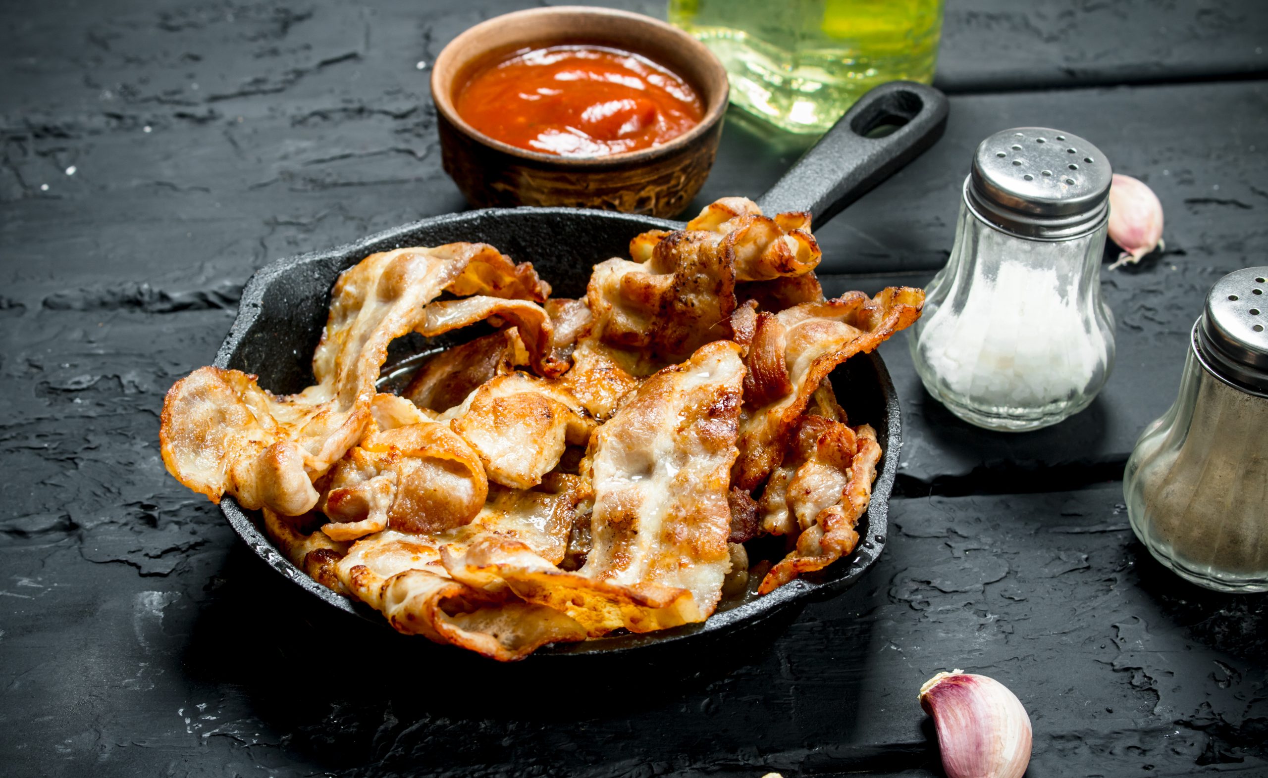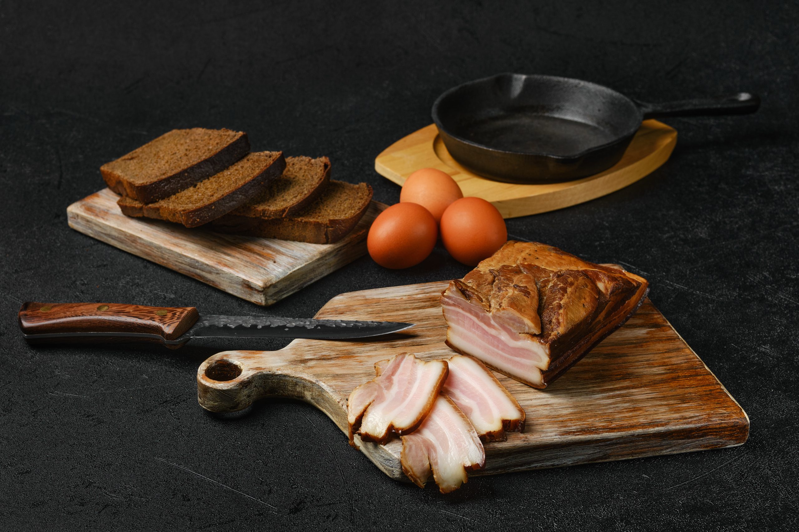Daging babi bagian perut yang dimarinasi selama 7 hari dan diasap selama 6 jam.